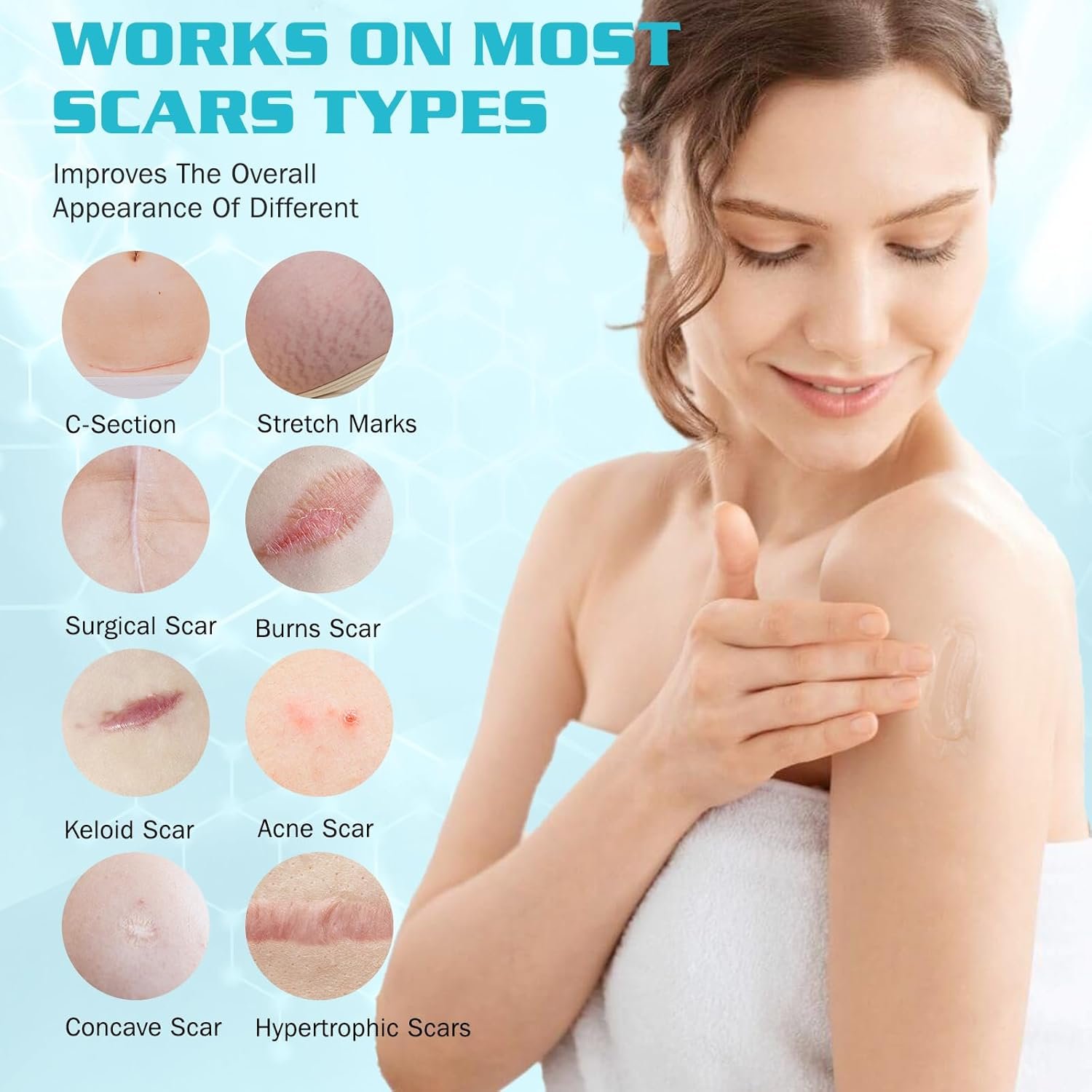 Crème cicatrisante, gel silicone pour cicatrices – Répare les cicatrices anciennes et récentes : cicatrices chirurgicales, vergetures, brûlures, chéloïdes, césarienne, cicatrices d’acne