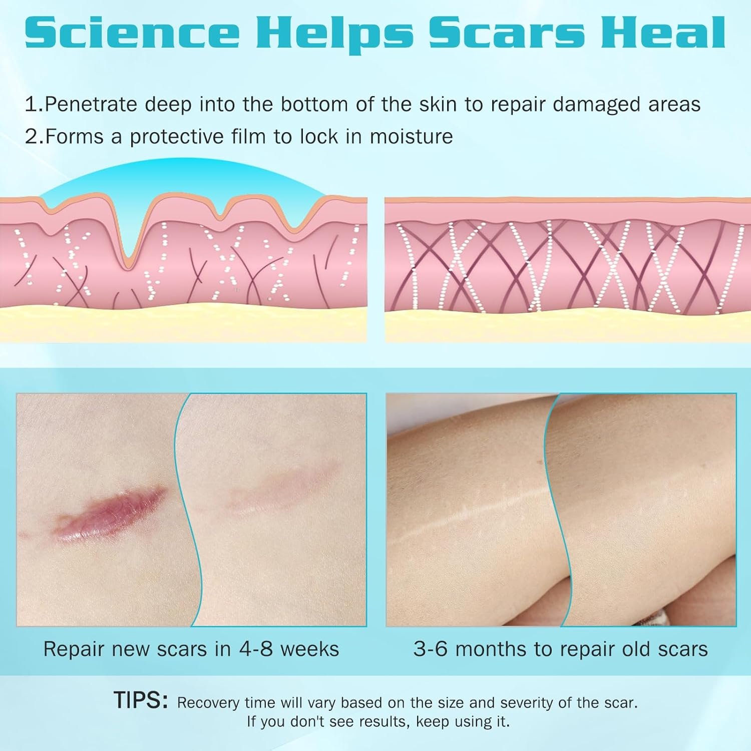 👉 Amélioration rapide des cicatrices récentes, résultat visible en 3 à 6 mois pour les anciennes.